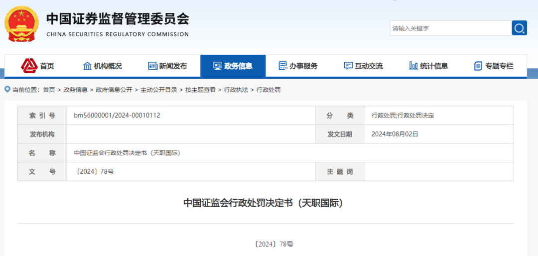 最近,证监会网站“行政处罚”栏目新增一起会计师事务所处罚案例:因奇信股份年报审计项目,对天职国际责令改正,“没一罚五”合计超2700万元,并处暂停从事证券服务业务六个月。