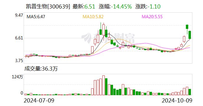 凯普生物融资融券信息显示,2024年10月9日融资净偿还550.11万元;融资余额9067.58万元,较前一日下降5.72%。