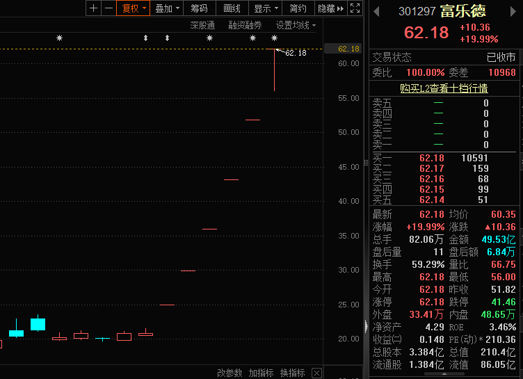 截至24日收盘,富乐德总市值210.41亿元,滚动市盈率高达209.94倍,短期炒作情绪高涨。当日收盘龙虎榜数据显示净流出1.8亿元,中信证券上海东方路营业部及东方证券上海黄浦区中山南路第一营业部分别净卖出1.83亿元、1.54亿元。