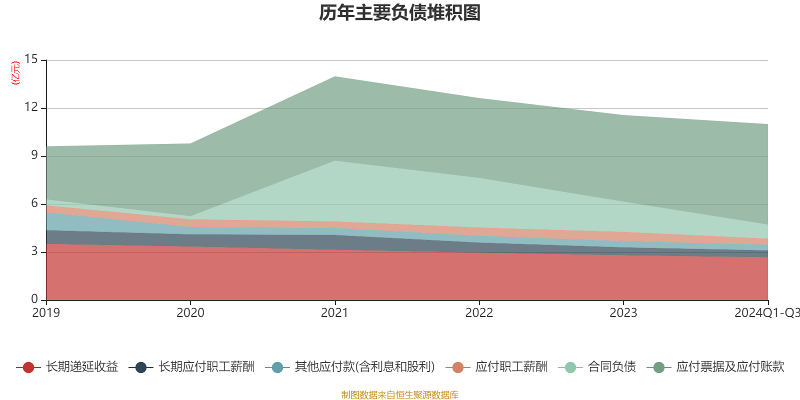 负债重大变化方面,截至2024年三季度末,公司合同负债较上年末减少53.28%,占公司总资产比重下降2.75个百分点;应付票据及应付账款较上年末增加15.93%,占公司总资产比重上升2.71个百分点;长期应付款合计较上年末增加78.32%,占公司总资产比重下降1.62个百分点;应付职工薪酬较上年末减少34%,占公司总资产比重下降0.53个百分点。