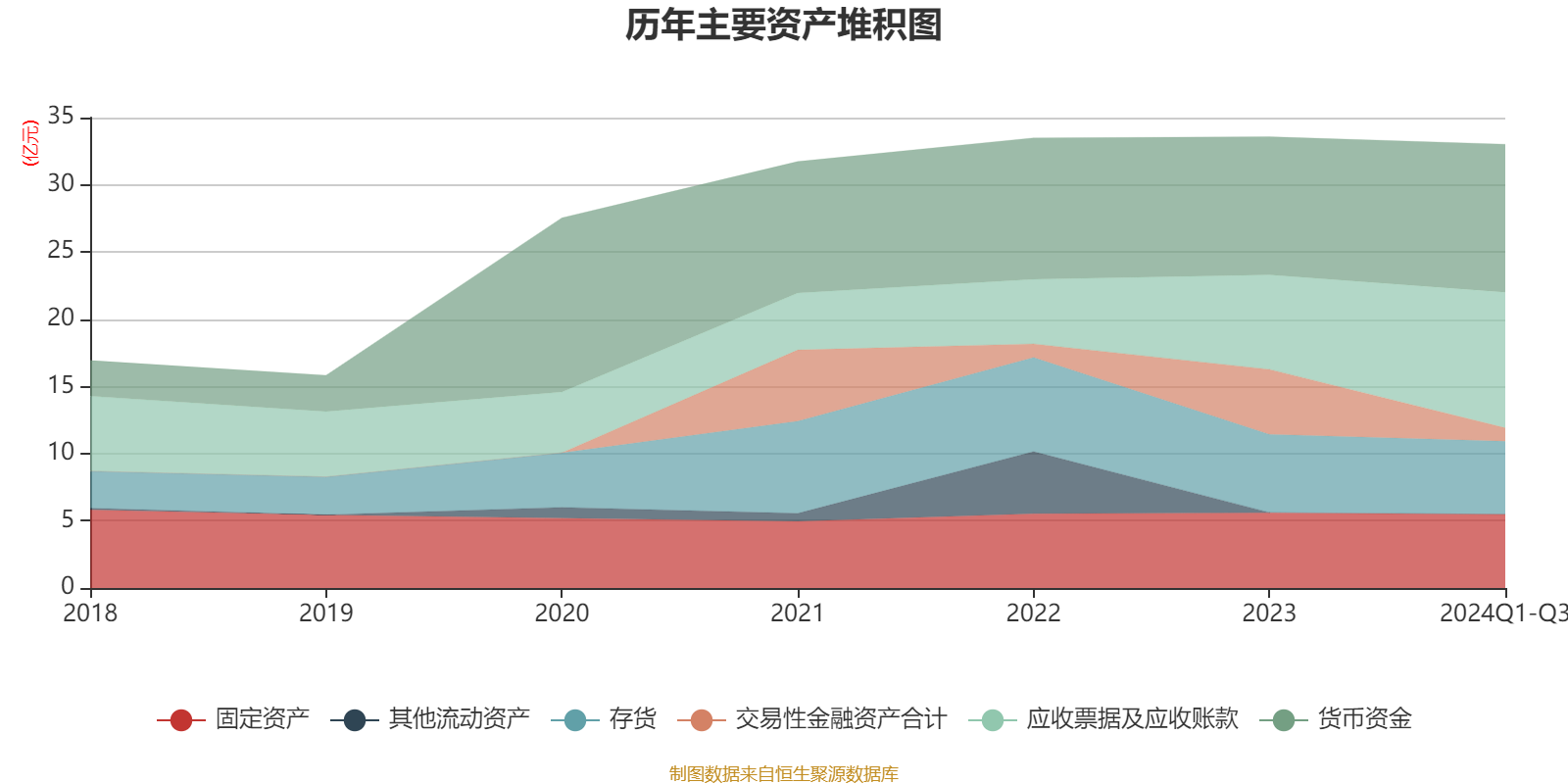 资产重大变化方面,截至2024年三季度末,公司交易性金融资产合计较上年末减少79.31%,占公司总资产比重下降10.66个百分点;应收票据及应收账款较上年末增加43.51%,占公司总资产比重上升9.02个百分点;货币资金较上年末增加7.2%,占公司总资产比重上升2.6个百分点;存货较上年末减少6.61%,占公司总资产比重下降0.81个百分点。