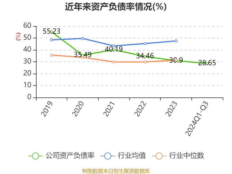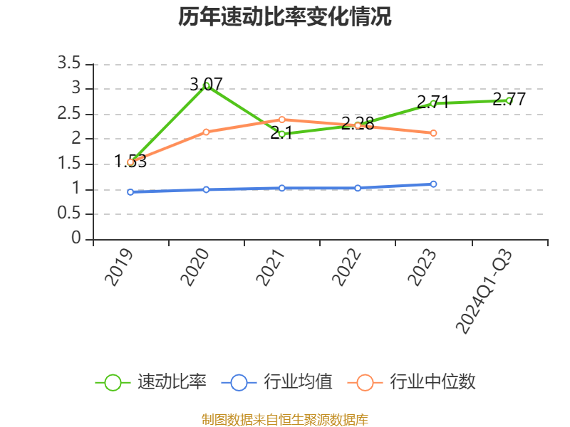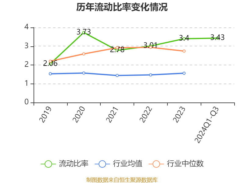 2024年前三季度,公司流动比率为3.43,速动比率为2.77。