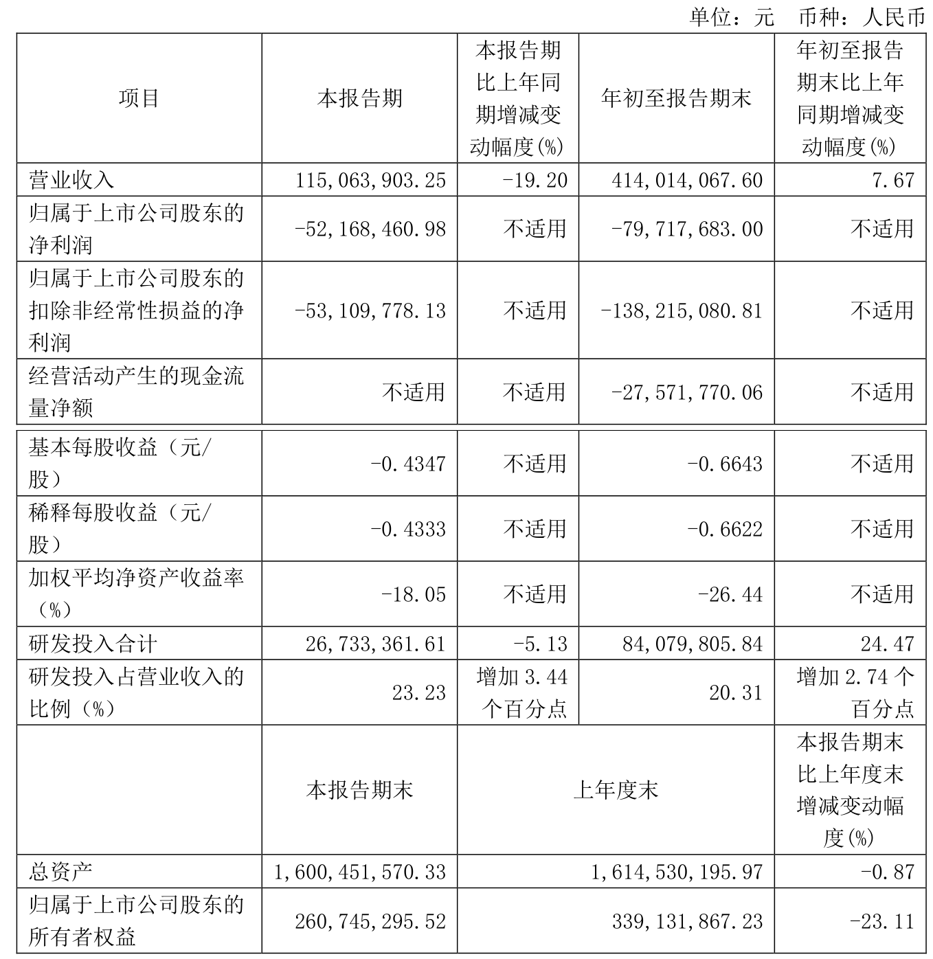 中证智能财讯昀冢科技(688260)10月30日披露2024年第三季度报告。前三季度公司实现营业收入4.14亿元,同比增长7.67%;归母净利润亏损7971.77万元,上年同期亏损6450.91万元;扣非净利润亏损1.38亿元,上年同期亏损7160.31万元;经营活动产生的现金流量净额为-2757.18万元,上年同期为-5165.82万元;报告期内,昀冢科技基本每股收益为-0.6643元,加权平均净资产收益率为-26.44%。