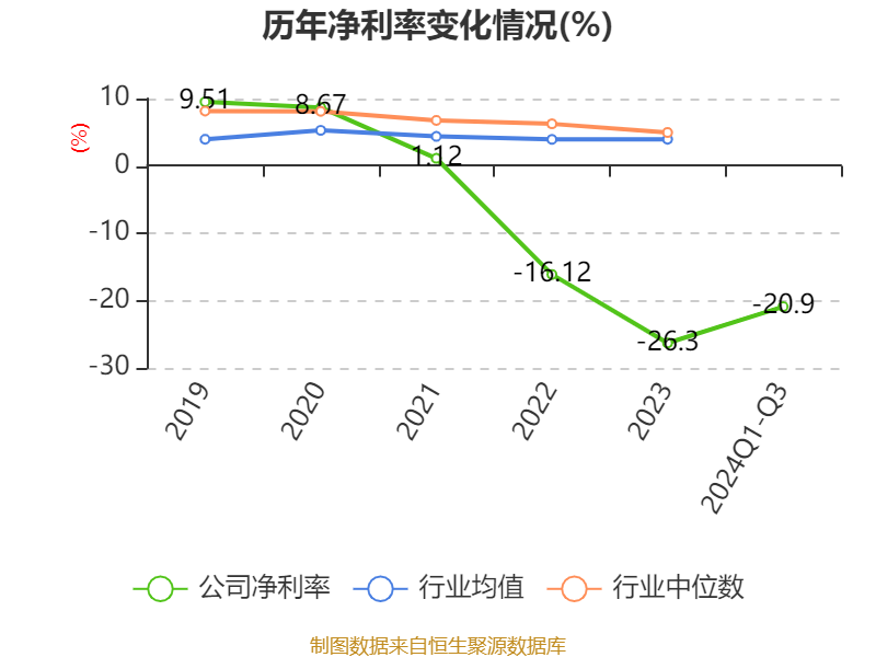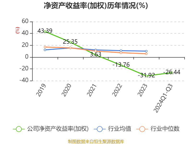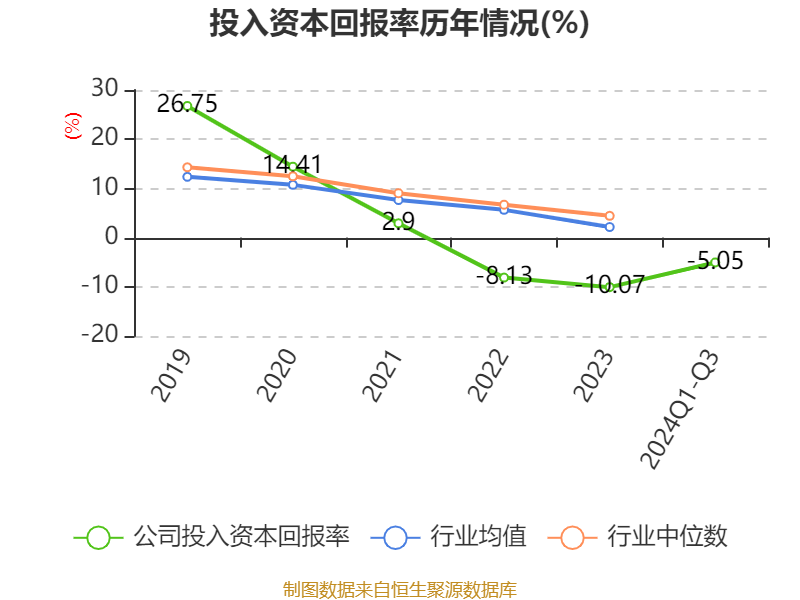 盈利能力方面, 2024年前三季度公司加权平均净资产收益率为-26.44%,同比下降11.11个百分点。公司2024年前三季度投入资本回报率为-5.05%,较上年同期上升0.85个百分点。