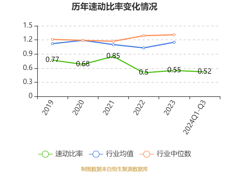 2024年前三季度,公司流动比率为0.63,速动比率为0.52。