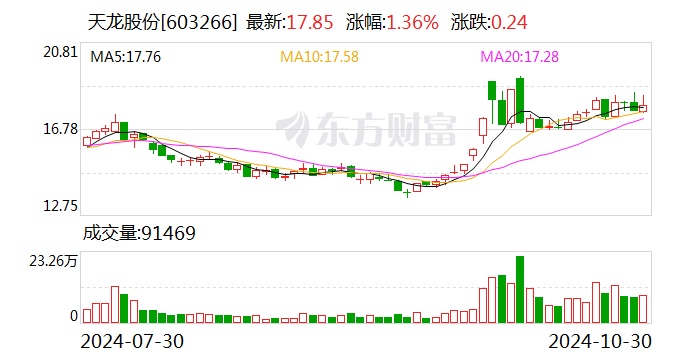 天龙股份(603266)公布2024年三季报,公司前三季度实现营业收入9.78亿元,同比增长2.9%;完成归母净利润8257万元,同比下降5.0%;扣非归母净利润7652万元,同比下降4.5%;经营现金流净额为1.28亿元,同比下降27.9%;EPS(全面摊薄)为0.4152元。