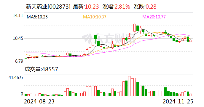 截至发稿,新天药业市值为23亿元。