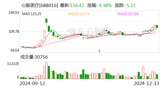 2024年前三季度,心脉医疗实现收入9.70亿元,归母净利润5.53亿元。