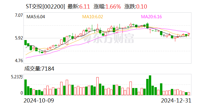 2024年前三季度,ST交投实现收入3.08亿元,归母净利润-2965万元。