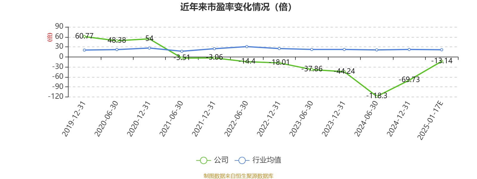 中证智能财讯ST惠程(维权)(002168)1月17日晚间披露2024年度业绩预告,预计2024年归母净利润亏损1.3亿元至1.8亿元,上年同期盈利189.73万元;扣非净利润亏损1.4亿元至1.9亿元,上年同期亏损1.21亿元;基本每股收益-0.1658元/股至-0.2295元/股。以1月17日收盘价计算,ST惠程目前市盈率(TTM)约为-11.02倍至-15.26倍,市净率(LF)约-28.62倍,市销率(TTM)约7.58倍。