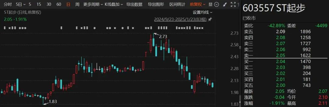 ST起步公告称,经初步测算,公司预计2024年度归属于上市公司股东的净利润亏损9000万元至1.35亿元。预计归属于上市公司股东扣除非经常性损益后的净利润亏损5500万元至8000万元。预计2024年度实现营业收入3.1亿元至3.5亿元,扣除与主营业务无关的业务收入和不具备商业实质的收入后的营业收入为3亿元至3.4亿元。如公司2024年度经审计的利润总额、净利润或者扣除非经常性损益后的净利润孰低者为负值且扣除与主营业务无关的业务收入和不具备商业实质的收入后的营业收入低于3亿元,公司股票在2024年度报告披露后将被实施退市风险警示。