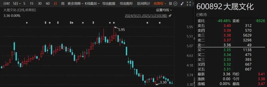 公司1月23日一同发布的风险提示公告显示,根据本次业绩预告,预计公司2024年度利润总额、净利润、扣除非经常性损益后的净利润三者孰低为负值,且扣除后的营业收入低于3亿元,触及《深交所股票上市规则》相关规定的情形,公司股票交易存在可能被深交所实施退市风险警示的风险。公司将在2024年年度报告披露前至少再披露两次风险提示公告。