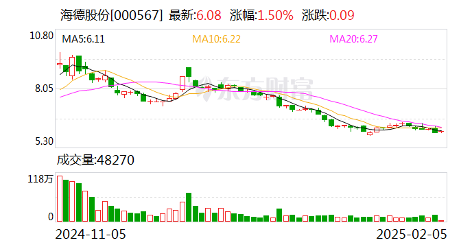 海德股份是一家持有地方AMC牌照、以不良资产管理为主营业务的A股上市公司,也是海南自贸港唯一一家金融上市公司。公开资料显示,截至1月27日,A股多元金融行业已有12家上市公司公布2024年业绩预告,2024年平均实现净利润预计为0.65亿元—1.31亿元,同比增长平均水平为-142.92%— -85.39%;海南省已有20家A股上市公司公布2024年业绩预告,2024年平均实现净利润预计为-0.49亿元—0.15亿元,同比增长平均水平为-145.02%— -93.43%。海德股份2024年预计实现净利润和下降幅度,显著优于同行业和同区域上市公司平均水平。