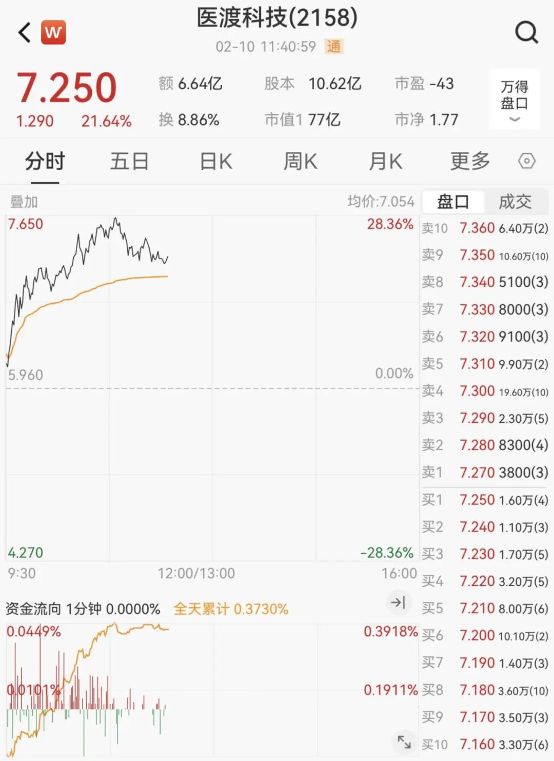 港股医渡科技一度大涨超28%,股价创近两年新高。