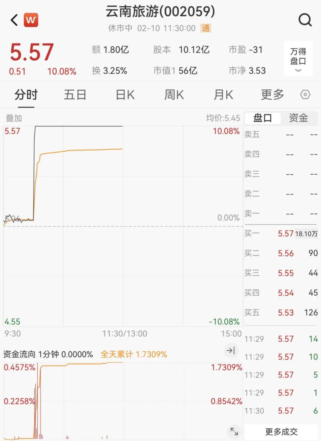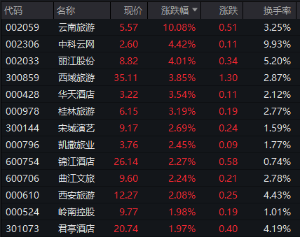餐饮旅游股走强,其中,云南旅游不到1分钟,直线拉涨停;中科云网、丽江股份、西域旅游等涨幅居前。