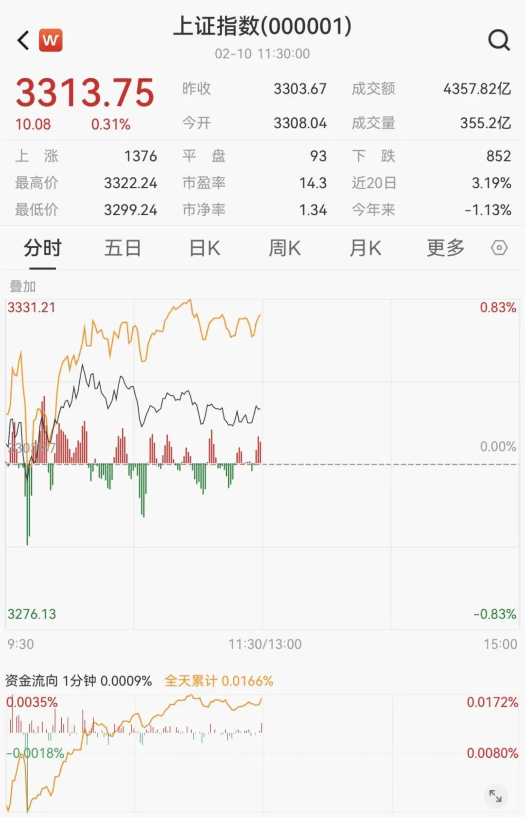 2月10日,A股三大指数涨跌不一。截至午间收盘,沪指涨0.31%,深成指跌0.1%,创业板指跌0.35%。