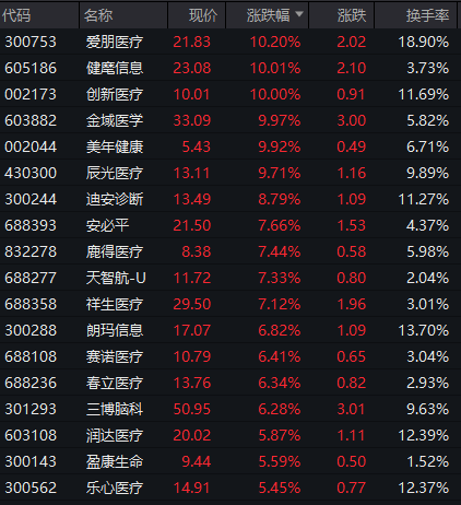 同时带动医疗保健板块快速走高,健麾信息、金域医学、创新医疗等涨停。