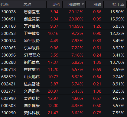 受Deepseek持续催化,AI医疗概念震荡走强,思创医惠(维权)、创业慧康20CM涨停,万达信息、卫宁健康、华平股份等涨幅居前。