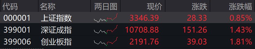 盘面上,房地产、券商尾盘崛起,万科A、天风证券涨停;半导体、锂电池产业链午后走强;黄金概念领跌。全市场超3500只个股上涨。