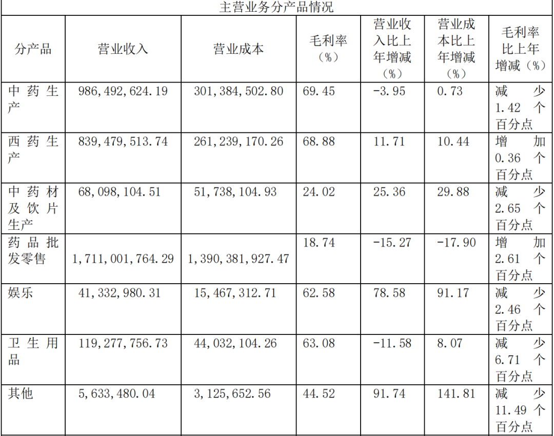 如此来看,上市公司称得上是一家“老牌药企”。初期,千金药业以中成药产品“妇科千金片”的生产和销售起家,后逐步发展成一家集中药、西药、卫生用品等多品类产品生产、加工及销售为主的综合型制药企业。
