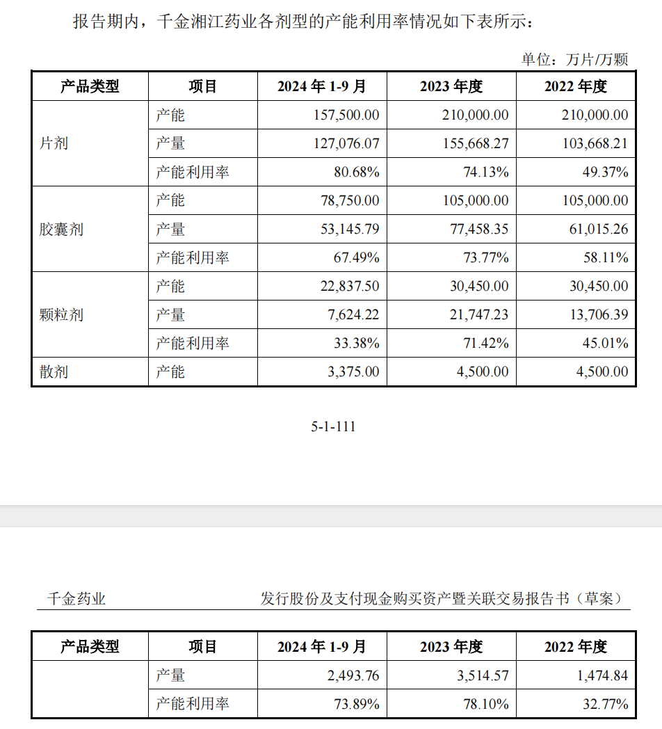 IPO日报注意到,报告期内,千金湘江药业各项产品类型的产能均未饱和。