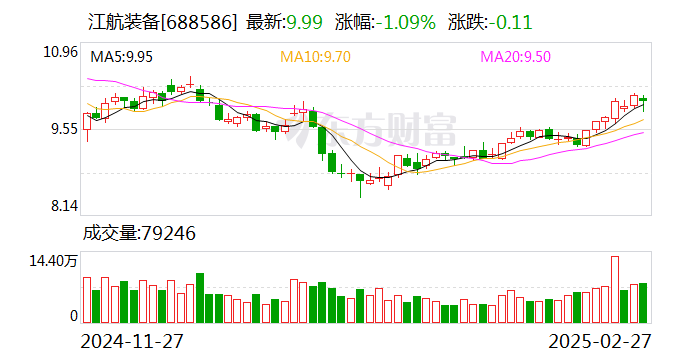 中证智能财讯江航装备(688586)2月27日晚间披露2024年业绩快报,公司实现营业收入10.93亿元,同比下降9.98%;归母净利润1.25亿元,同比下降35.02%;扣非净利润1.04亿元,同比下降34.97%;基本每股收益0.16元,加权平均净资产收益率为5.32%。以2月27日收盘价计算,江航装备目前市盈率(TTM)约为63.04倍,市净率(LF)约3.14倍,市销率(TTM)约7.22倍。