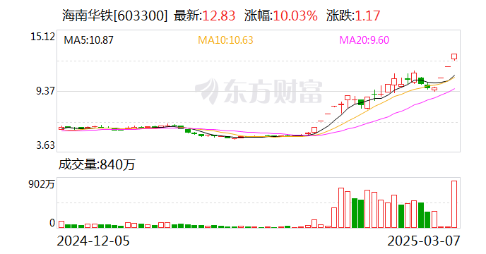 | 603300 | 海南华铁 | 10.03 | 42.59 | -198375.30 |