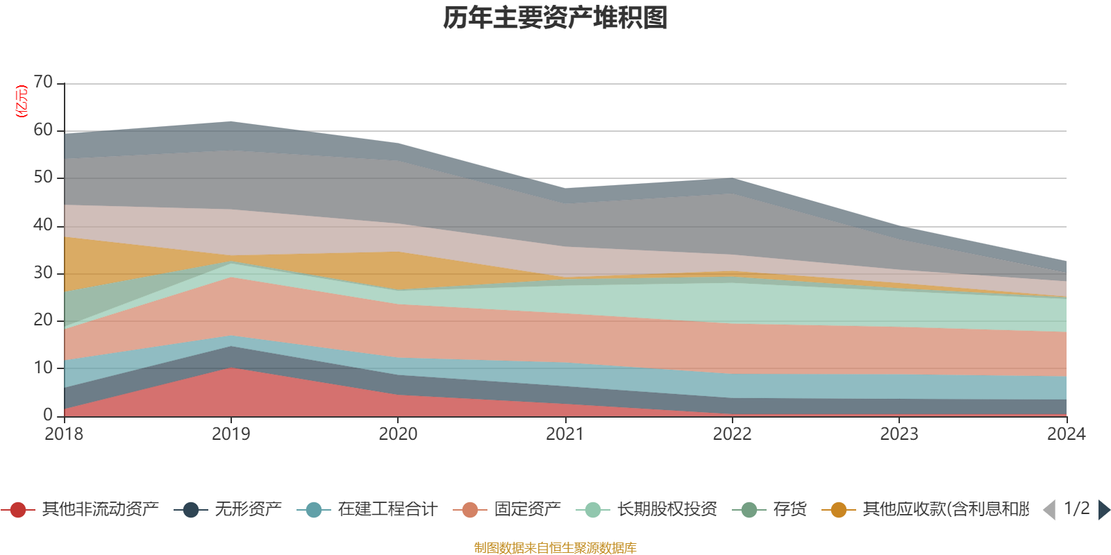 资产重大变化方面,截至2024年末,公司货币资金较上年末减少70.94%,占公司总资产比重下降10.24个百分点;固定资产较上年末减少6.57%,占公司总资产比重上升3.7个百分点;应收票据及应收账款较上年末增加13.07%,占公司总资产比重上升2.73个百分点;长期股权投资较上年末减少7.48%,占公司总资产比重上升2.56个百分点。