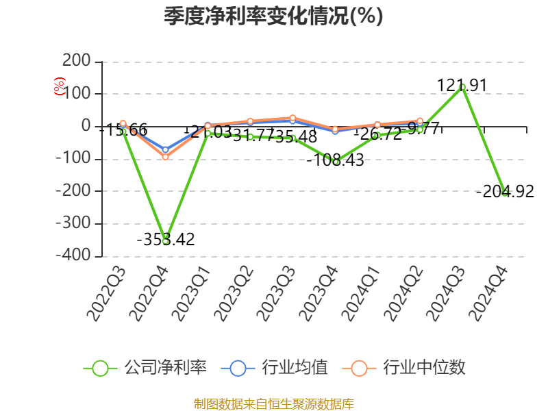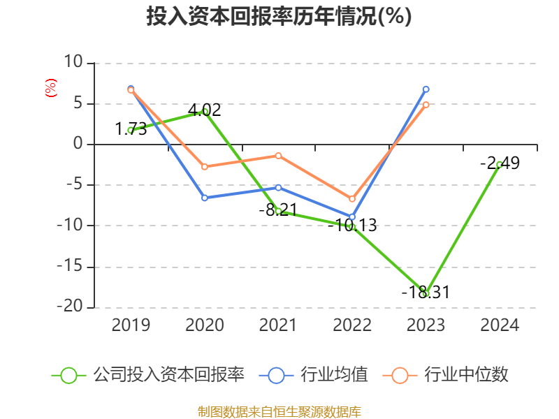 数据显示,2024年公司加权平均净资产收益率为-1.95%,较上年同期上升23.86个百分点。公司2024年投入资本回报率为-2.49%,较上年同期上升15.82个百分点。