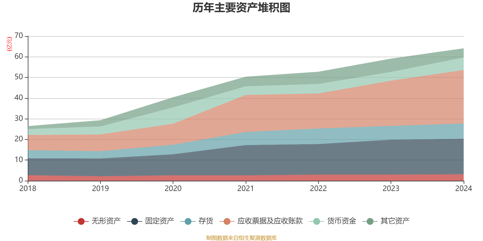 资产重大变化方面,截至2024年末,公司应收票据及应收账款较上年末增加18.44%,占公司总资产比重上升3.42个百分点;其他应收款(含利息和股利)较上年末减少95.43%,占公司总资产比重下降2.49个百分点;货币资金较上年末增加41.55%,占公司总资产比重上升2.21个百分点;固定资产较上年末增加1.6%,占公司总资产比重下降1.8个百分点。
