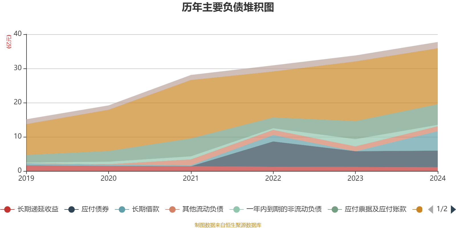 负债重大变化方面,截至2024年末,公司长期借款占公司总资产的8.94%,上年末为0;短期借款较上年末减少6.22%,占公司总资产比重下降3.99个百分点;一年内到期的非流动负债较上年末减少82.07%,占公司总资产比重下降2.95个百分点;应付票据及应付账款较上年末增加14.26%,占公司总资产比重上升0.48个百分点。