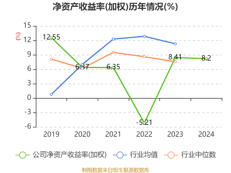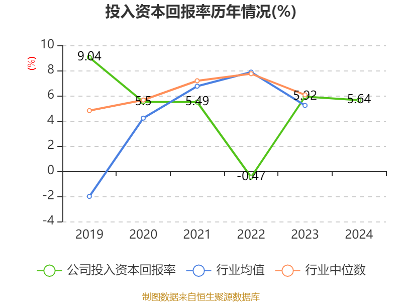 数据显示,2024年公司加权平均净资产收益率为8.2%,较上年同期下降0.21个百分点。公司2024年投入资本回报率为5.64%,较上年同期下降0.28个百分点。