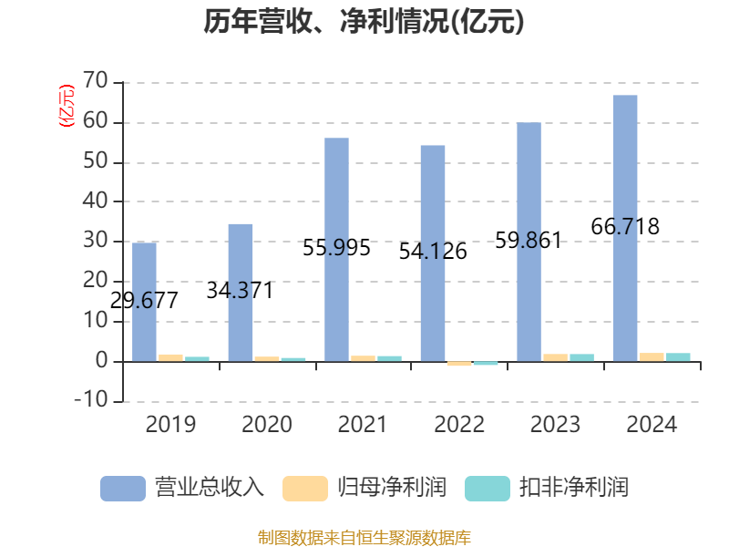 中证智能财讯豪美新材(维权)(002988)3月29日披露2024年年度报告。2024年,公司实现营业总收入66.72亿元,同比增长11.46%;归母净利润2.09亿元,同比增长15.50%;扣非净利润2.05亿元,同比增长14.02%;经营活动产生的现金流量净额为2.2亿元,同比下降18.75%;报告期内,豪美新材基本每股收益为0.84元,加权平均净资产收益率为8.20%。公司2024年度分配预案为:拟向全体股东每10股派现1.6元(含税)。