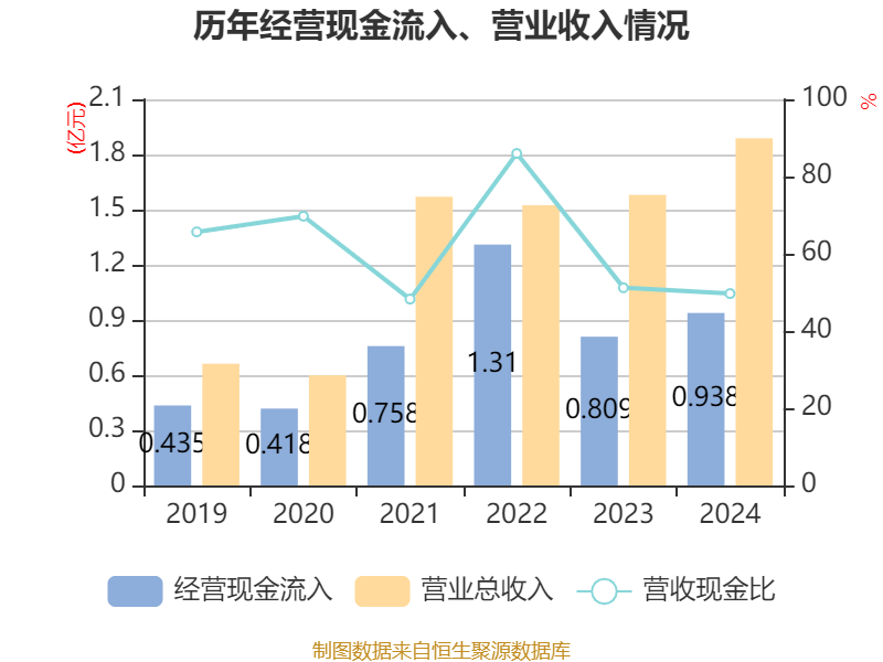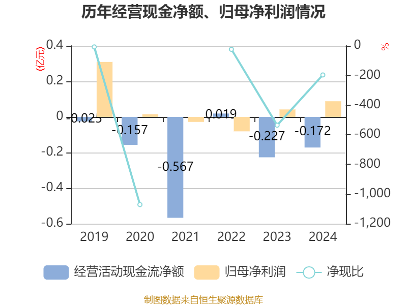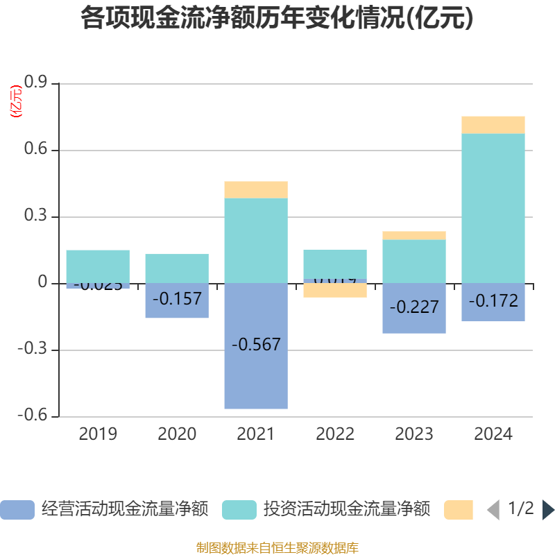 截至2024年,公司经营活动现金流净额为-1723.61万元,同比增加546.76万元;筹资活动现金流净额773.05万元,同比增加399.99万元;投资活动现金流净额6741.54万元,上年同期为1957.99万元。