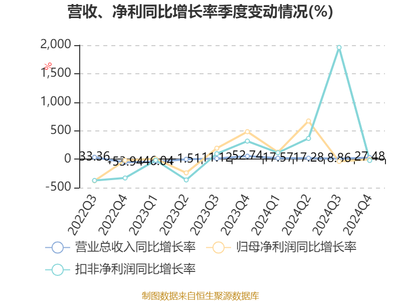 资产重大变化方面,截至2024年末,公司一年内到期的非流动资产较上年末减少58.87%,占公司总资产比重下降51.82个百分点;其他非流动资产较上年末增加1312072.46%,占公司总资产比重上升23.38个百分点;固定资产较上年末增加337.9%,占公司总资产比重上升8个百分点;货币资金较上年末增加625.27%,占公司总资产比重上升7.69个百分点。