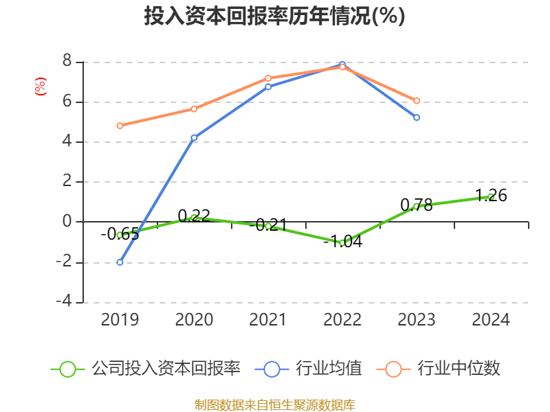 数据显示,2024年公司加权平均净资产收益率为1.36%,较上年同期上升0.69个百分点。公司2024年投入资本回报率为1.26%,较上年同期上升0.48个百分点。