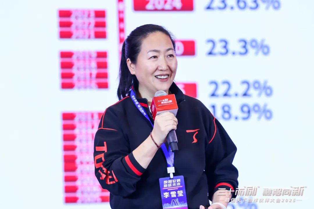 从信息时代、数字时代到智能时代,「“安全”是不变的主题,“智算”是时代的红利」。大会现场,天融信科技集团董事长兼CEO李雪莹正式提出:2025年Topsec开启第4个“十年”,致力于成为中国领先的网络安全与智算云解决方案提供商。面向第4个十年,我们要「融“智”跃迁」,即把人工智能的技术充分融入到天融信的产品、技术、交互模式当中去,实现产品技术的升级,更好地服务客户所需。李雪莹还提到,天融信继续与合作伙伴携手并进,计划将50-60%的市场、70-80%基础交付、20-30%高端交付与增值服务交给合作伙伴,共享新机遇、共创新格局、共赢新未来。