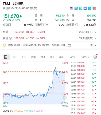 受财报影响,台积电股价在夜盘大涨4%。