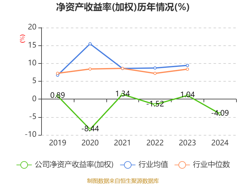 数据显示,2024年公司加权平均净资产收益率为-4.09%,较上年同期下降5.13个百分点。公司2024年投入资本回报率为-3.28%,较上年同期下降3.87个百分点。
