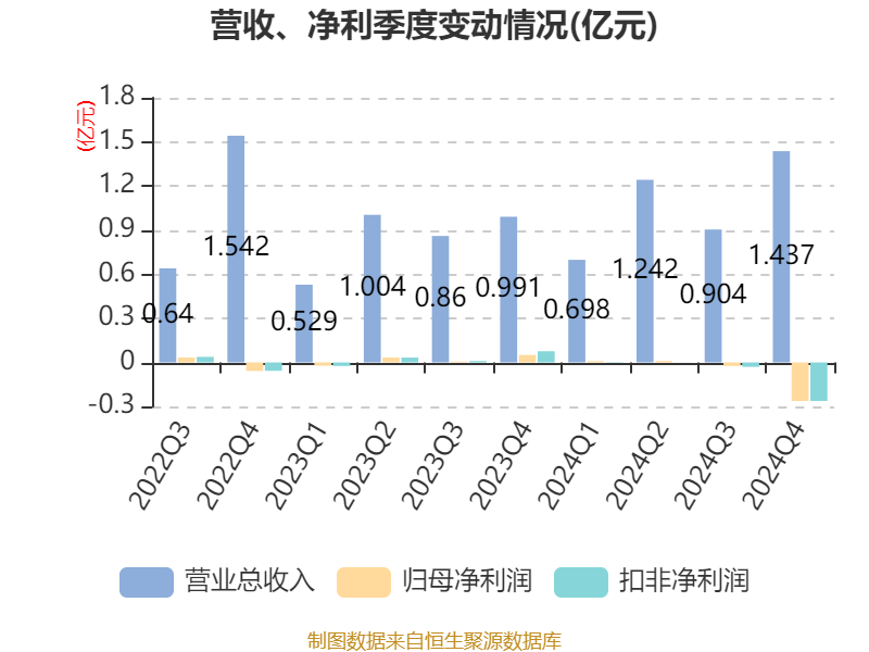 中证智能财讯和顺电气(300141)4月21日披露2024年年度报告。2024年,公司实现营业总收入4.28亿元,同比增长26.52%;归母净利润亏损2676.88万元,上年同期盈利689.67万元;扣非净利润亏损2899.83万元,上年同期盈利948.33万元;经营活动产生的现金流量净额为9994.53万元,同比增长62.32%;报告期内,和顺电气基本每股收益为-0.11元,加权平均净资产收益率为-4.09%。