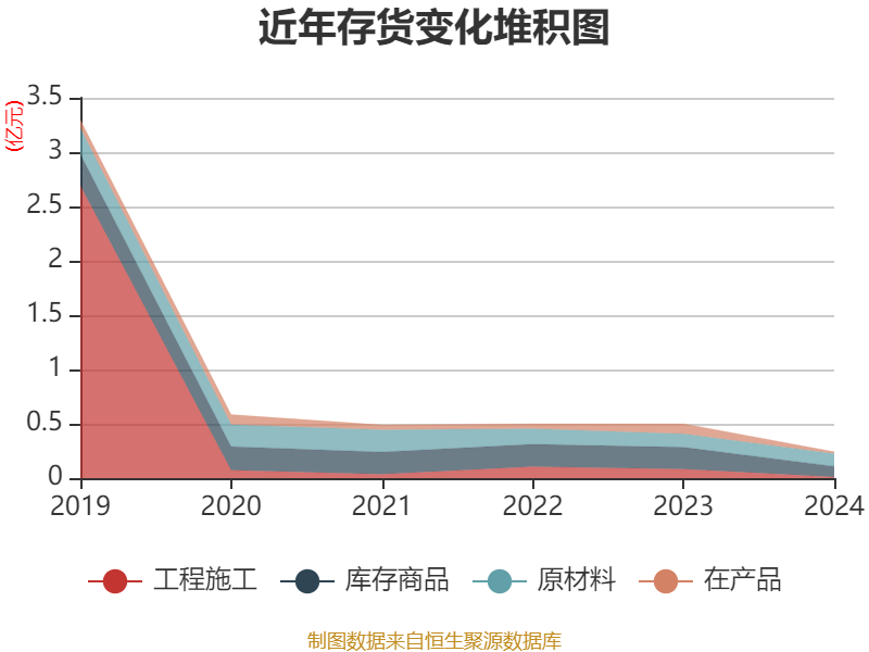 从存货变动来看,截至2024年末,公司存货账面价值为2428.57万元,占净资产的3.75%,较上年末减少2578.93万元。其中,存货跌价准备为2264.41万元,计提比例为48.25%。