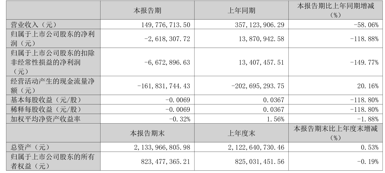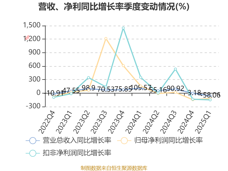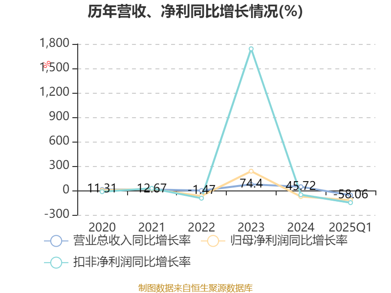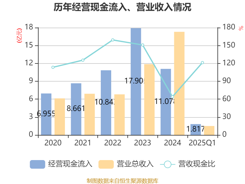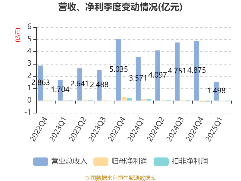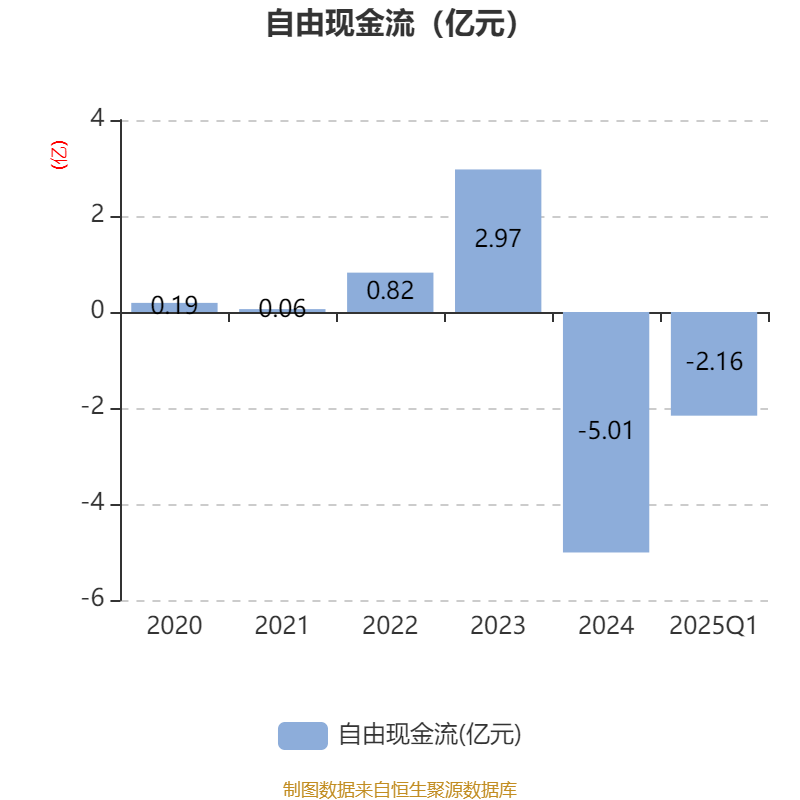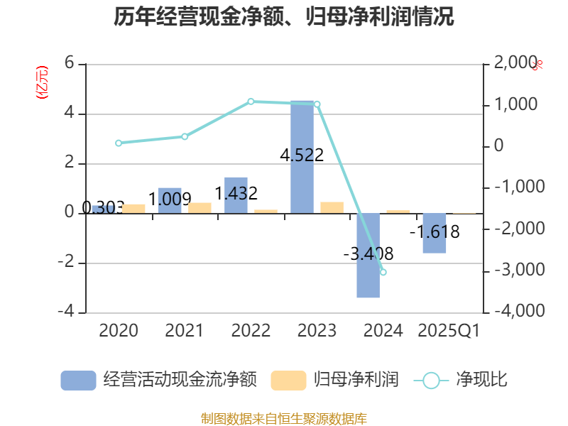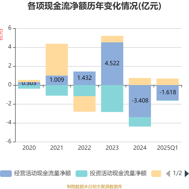 截至2025年一季度末,公司经营活动现金流净额为-1.62亿元,同比增加4086.35万元;筹资活动现金流净额6912.19万元,同比增加7298.58万元;投资活动现金流净额-497.92万元,上年同期为-1578.27万元。
