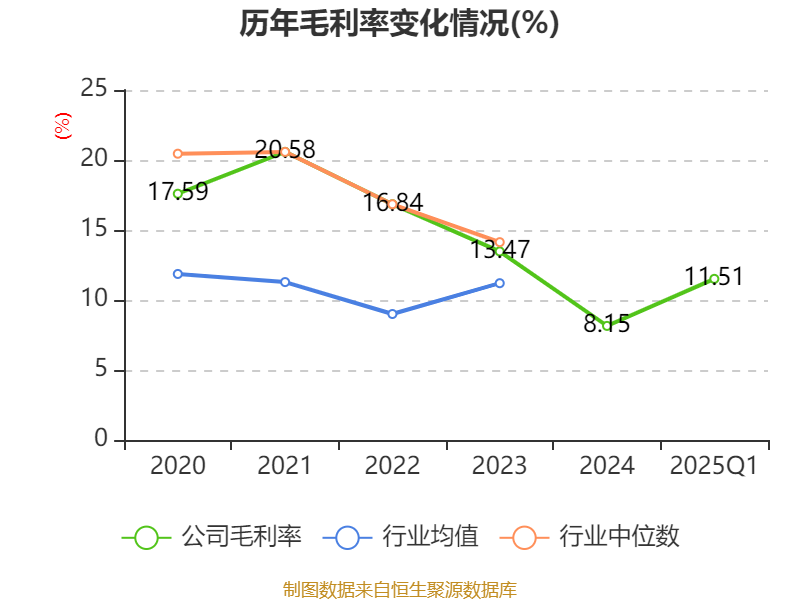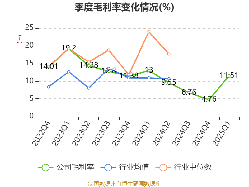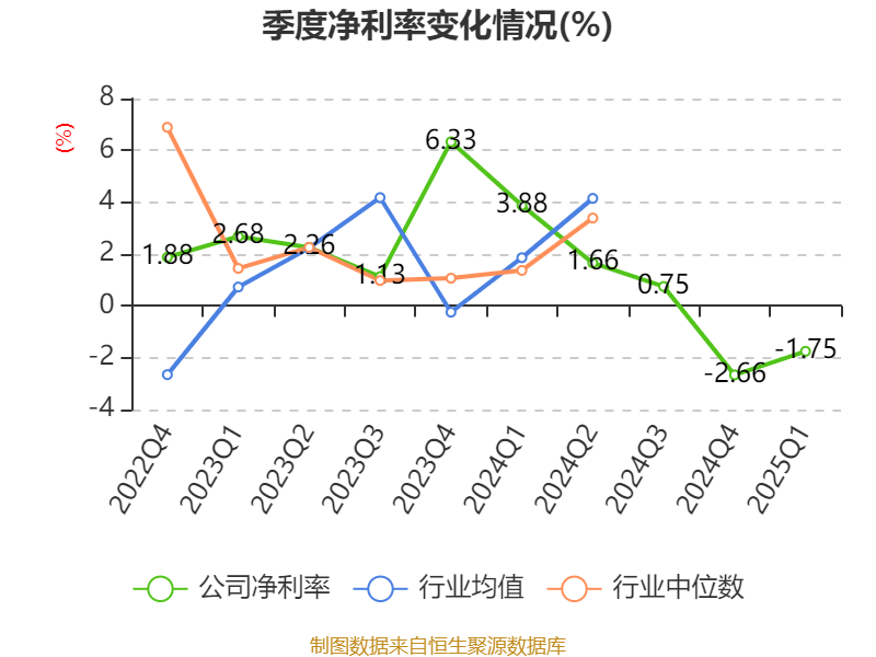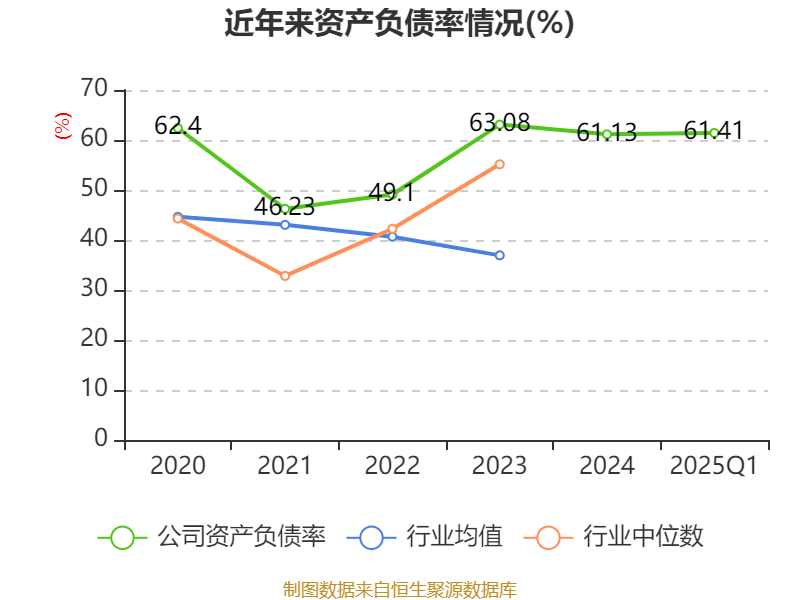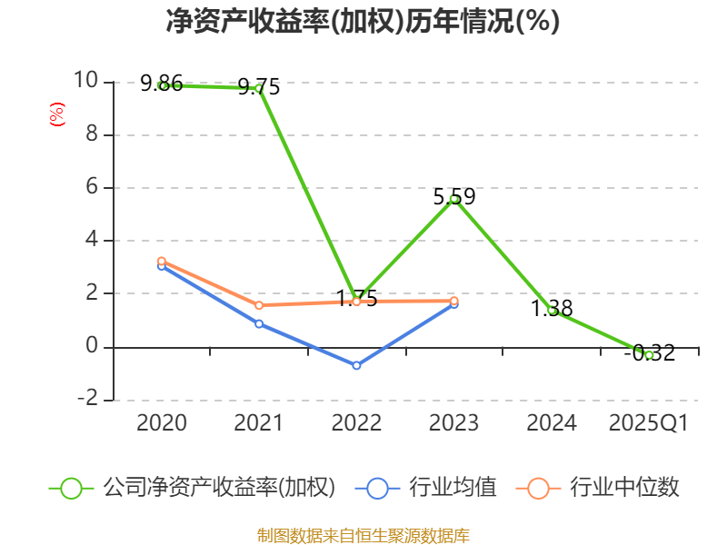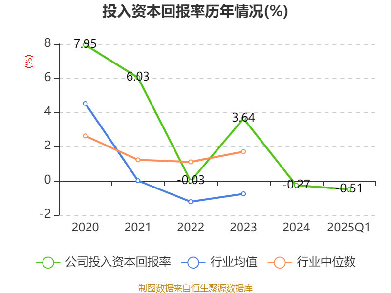盈利能力方面, 2025年一季度公司加权平均净资产收益率为-0.32%,同比下降1.88个百分点。公司2025年第一季度投入资本回报率为-0.51%,较上年同期下降1.77个百分点。