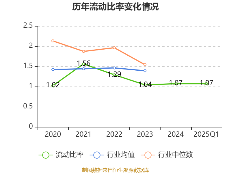 2025年第一季度,公司流动比率为1.07,速动比率为0.94。