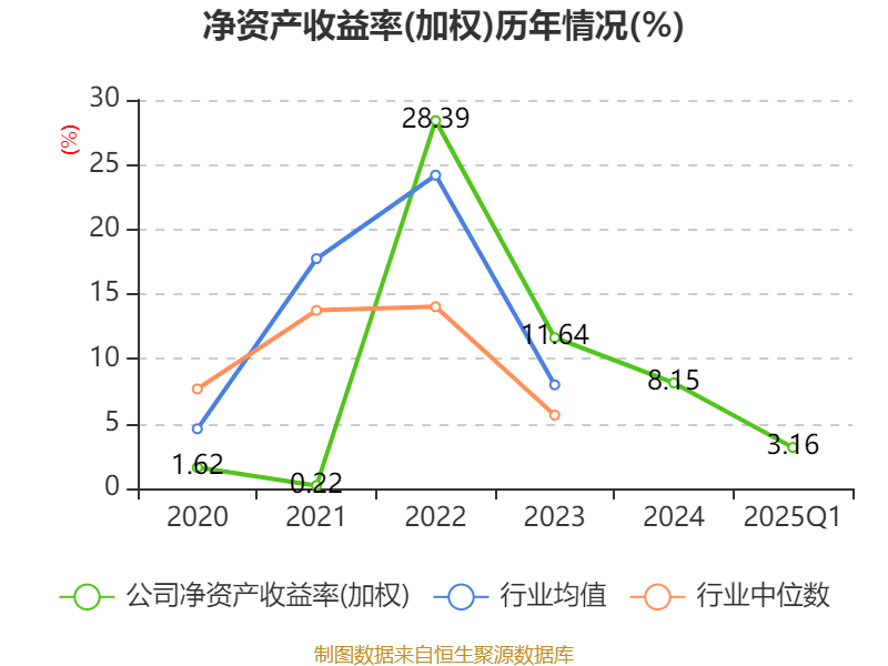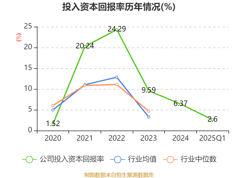 盈利能力方面, 2025年一季度公司加权平均净资产收益率为3.16%,同比上升2.44个百分点。公司2025年第一季度投入资本回报率为2.6%,较上年同期上升2.04个百分点。