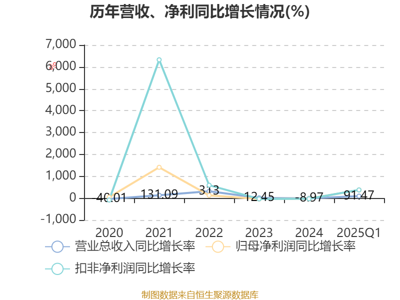 资产重大变化方面,截至2025年一季度末,公司在建工程合计较上年末增加10.14%,占公司总资产比重上升1.63个百分点;无形资产较上年末减少0.23%,占公司总资产比重下降0.99个百分点;固定资产较上年末增加0.43%,占公司总资产比重下降0.59个百分点;货币资金较上年末减少0.08%,占公司总资产比重下降0.14个百分点。
