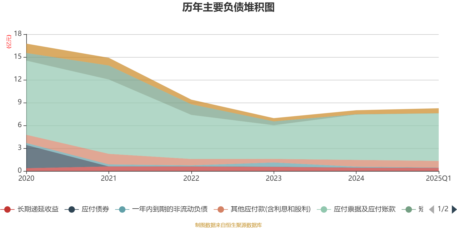 负债重大变化方面,截至2025年一季度末,公司应付票据及应付账款较上年末增加4.91%,占公司总资产比重上升0.93个百分点;一年内到期的非流动负债较上年末减少74.73%,占公司总资产比重下降0.52个百分点;合同负债较上年末增加413.9%,占公司总资产比重上升0.5个百分点;长期借款占公司总资产的0.25%,上年末为0。