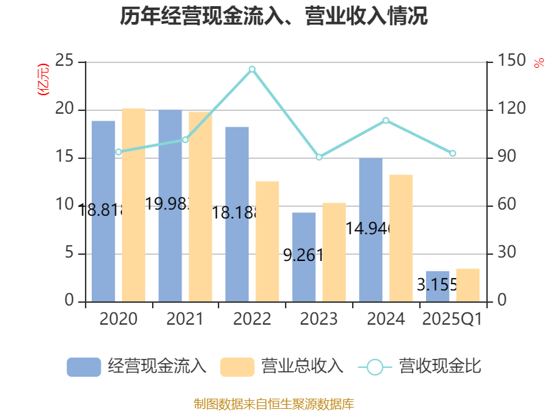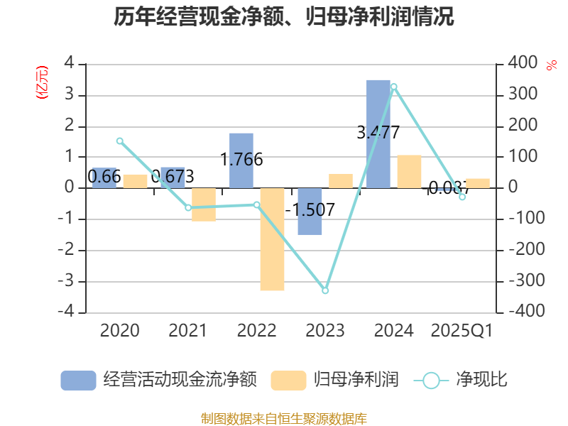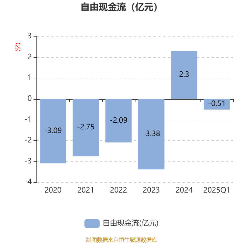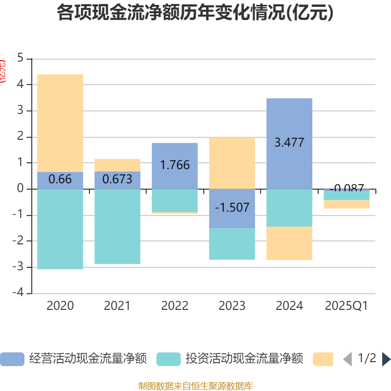 截至2025年一季度末,公司经营活动现金流净额为-867.24万元,同比减少2.08亿元;筹资活动现金流净额-3189.21万元,同比减少608.36万元;投资活动现金流净额-3436.58万元,上年同期为-6698.62万元。