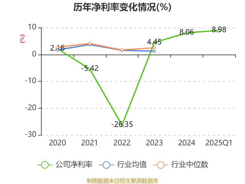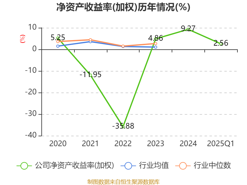 盈利能力方面, 2025年一季度公司加权平均净资产收益率为2.56%,同比上升0.71个百分点。公司2025年第一季度投入资本回报率为2.46%,较上年同期上升0.82个百分点。