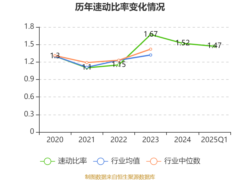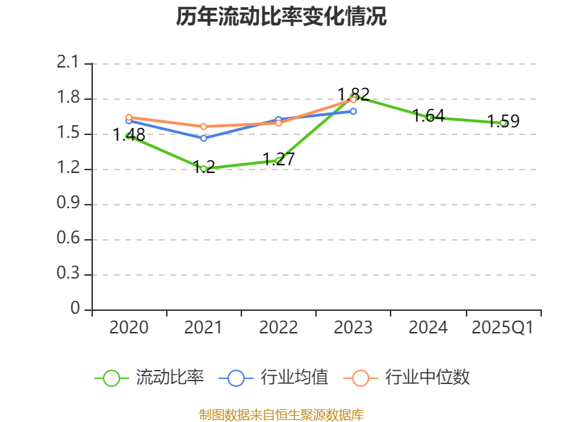 2025年第一季度,公司流动比率为1.59,速动比率为1.47。